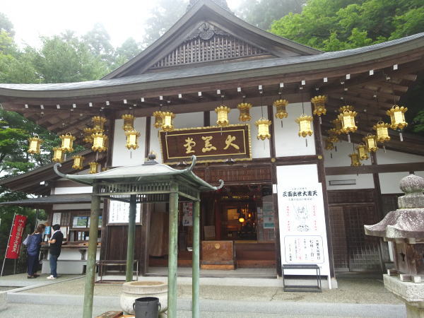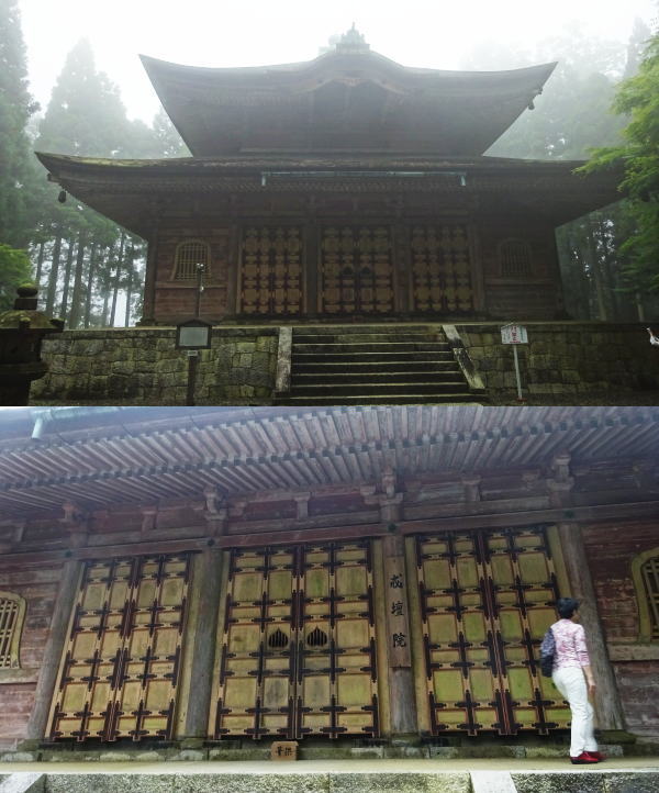 左が根本中堂で右に納経所。参拝前に納経するよう案内があり納経帖を預けて参拝に進む。 |