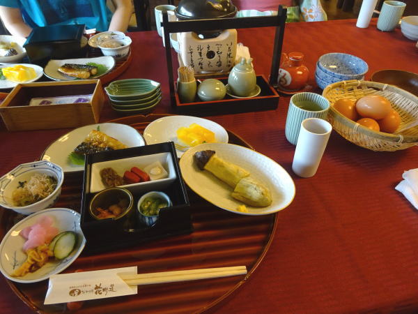 あっという間に3日目の朝。朝食は一階の広間で。朝も手抜きのない料理でおいしいかった。今日は比叡山延暦寺を見学して帰る予定。 |