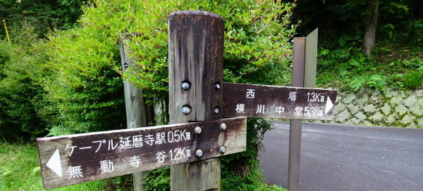 比叡山駅に到着。駅から15分くらいゆっくり坂道を上がると延暦寺の入り口に着く。 |