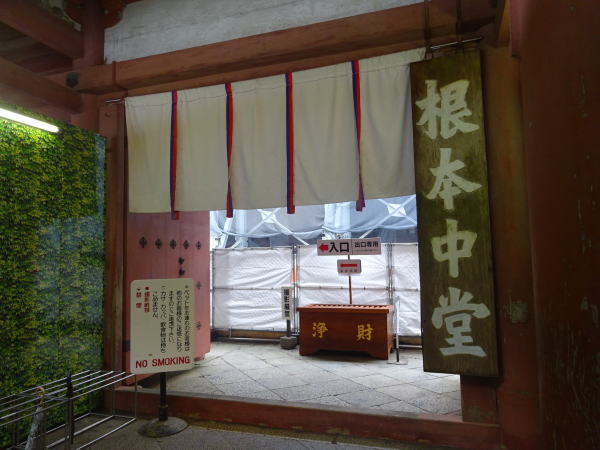 初めに根本中堂から。残念なことに改修工事中だが中に入りお参りはさせていただける。 |