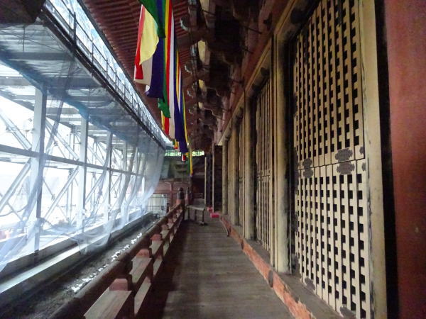 国宝の根本中堂.廻廊は平成28年から約十年かけ大改修中。上が現在の姿。 |