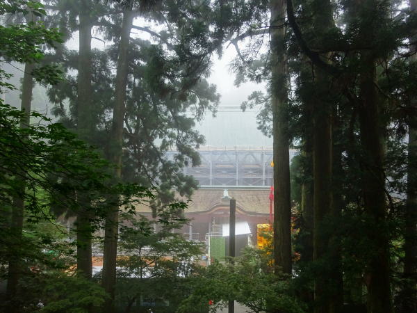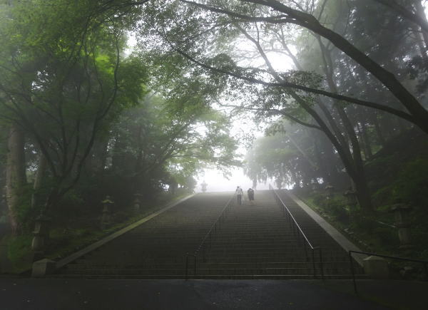 鬱蒼とした緑のなか深い霧につつまれて初めての比叡山はとても幻想的。 |