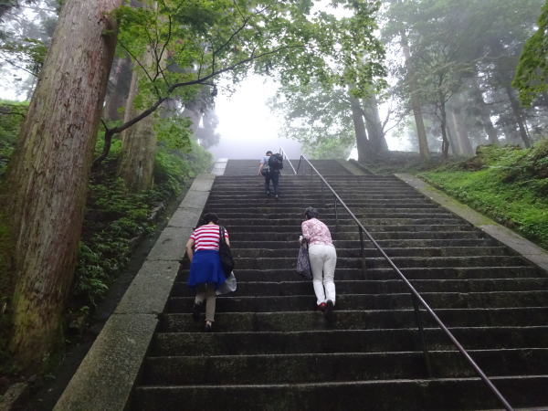 根本中堂から長い石段を上がって文殊楼へ。 |