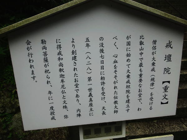 伝教大師『最澄』の亡くなった7日の後に嵯峨天皇より許可がおりて創建された。現在の建物は、(1678年)に再建されたもの。 |