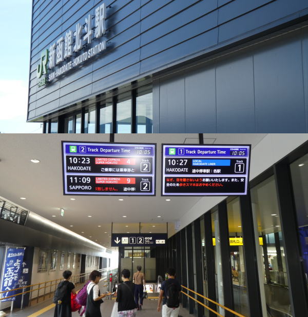 昨日と同じ送迎バスで新函館北斗駅まで送ってもらう。 |