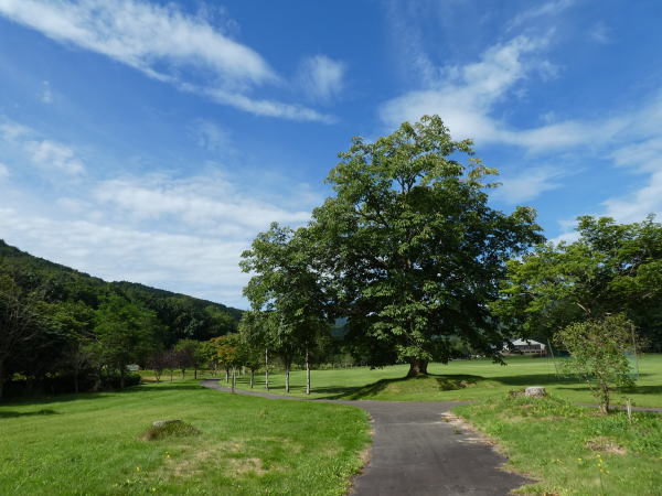 グリーンピア大沼の広い敷地の散歩はさわやかな天気で気持ちいい。 |