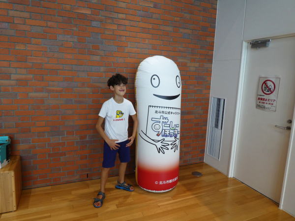 明日は函館駅に戻らないので、今のうちにと子供たちはお土産を買い、今日は函館を少し歩く予定なので、手ぶら観光という、ホテルまで荷物を運ぶサービスを利用する予定。しかし運ぶのはキャリーバッグだけで、お土産を段ボールに入れたものは断られてしまう。なんという融通の利かないことか、しょうがないタクシーでホテルへ荷物を運ぶことにする。 |