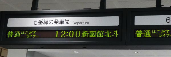JR函館駅発12:00の電車で新函館北斗駅へ向かう。@360円 |