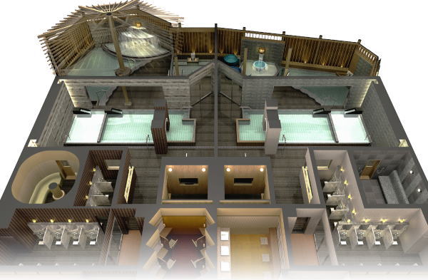 お風呂は大浴場「湯蔵」に露天風呂.寝湯.壺湯.サウナなどがある |