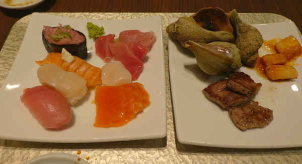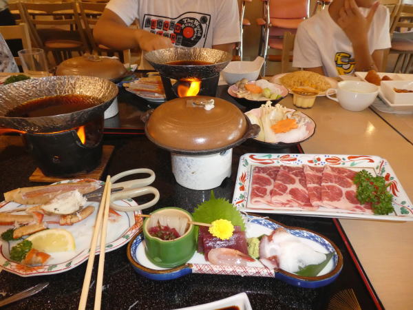 娘や孫たちは興奮気味に食べまくっている。若い人はいいがこの年になってもついつい食べ過ぎてしまう。たまにはいいが、こんな食事を何日も食べたら健康を害してしまうと思う。料理は一品一品運ばれたものをゆっくり味わって食べる方がいいと思える年になってしまった。 |