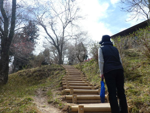 日本有数の桜の観光名所と海外でも知られているらしく外国の観光客がすごい。三分咲きの桜並木の道をゆっくり上る。 |