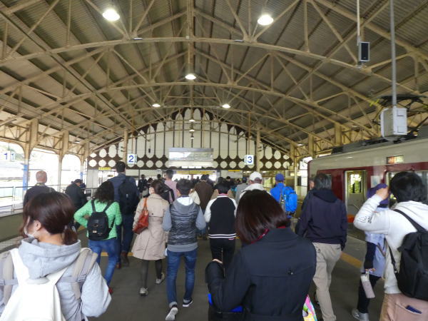 駅構内で少し休んでから、13:37分の近鉄急行阿部野橋行きに乗り橿原神宮駅を通って古市駅で乗り換え15:40分河内長野駅に戻ってくる。 |