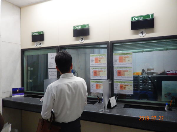 冷房のよくきいた待合室に腰掛けて書類を確認していると、すぐ後ろ席の中年のご夫婦が4番窓口がどうのこうのという話声が聞こえてくる。 あ!先日の自分と同じミスしてる、と思って声をかける。案の定その方たちの予約窓口がNo4になっている。ここ領事部ではない有料の「ロシアビザセンター」の窓口番号なのである。領事部での申請は2番でなければならない、同じ失敗なので説明すると憤慨した様子で、再度窓口に行くが拒否されすぐ戻ってくる。先日の自分の姿が思い起こされる。お二人は再申請に来る時間がないとのこと、お気の毒にとおもいながら、「ロシアビザセンター」はすぐ近くなので場所を教えてあげると慌ただしく出て行かれた。