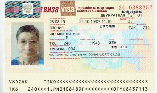 ロシア入国ビザ申請は代行業者に依頼すると、ダブルエントリー(2度出入国=10月24日入国、26日イスラエルへ出国、11月6日フランスから再入国の予定)