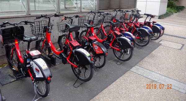 途中にレンタサイクル「港区自転車シェアリング」赤坂のサイクルポート。日本にもこんなのがあるんだ。 |