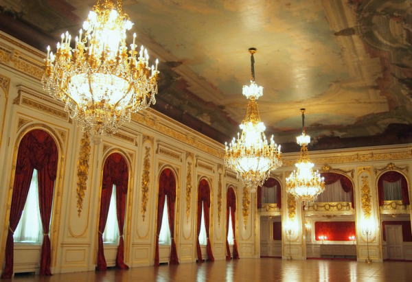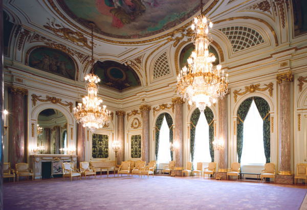 重量800キログラム)がある。広さは約330平米ある。この部屋は、雨天の際に歓迎行事を行ったり、また、晩餐会の招待客に食前酒や食後酒が供されたりする場所である。
