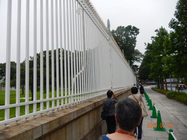 国会議事堂正面で記念撮影をしてから通用門を出て、迎賓館へ向かう。
