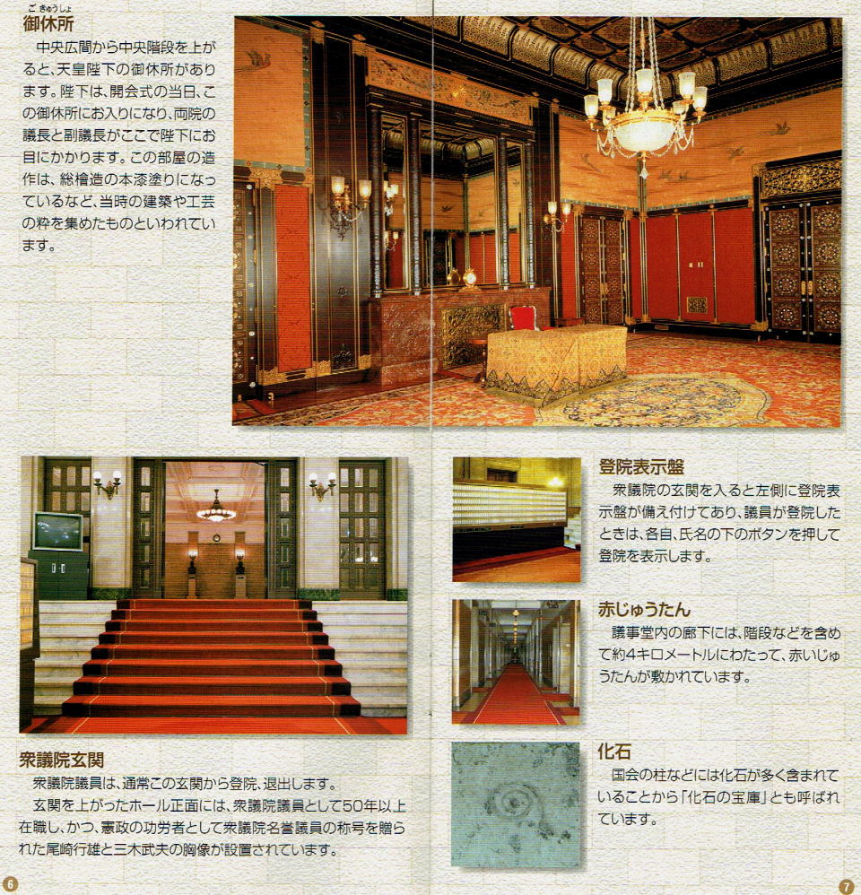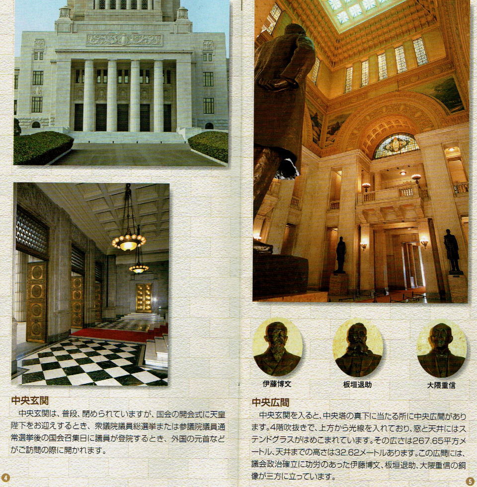 上の中央玄関は参議院側で衆議院では見られなかった。 |