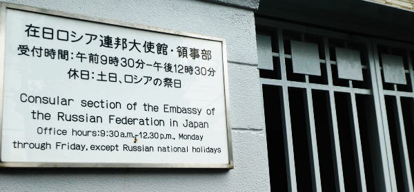 10:50分の予約時間少し前にロシア大使館隣の領事部事務所に入る。