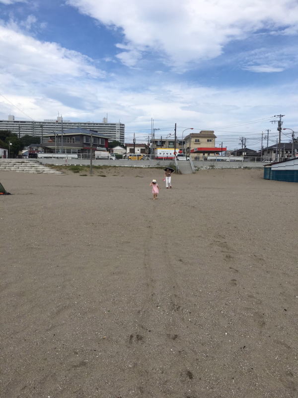 | チェックアウトは11時までなのでそれまでお風呂に入ったりして過ごす。 別館を出て本館フロントで清算したあと、ホテルの前の三浦海岸海水浴場を散策。 海の家もシーズンの終わりで泳ぐ人もわずかで閑散としていた。 |