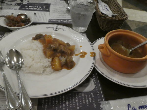 | 横須賀では海軍カレーのほかに横須賀バーガーが人気らしい。どちらも味見したいが一泊旅行では両方は無理。そこで海軍カレーに決定。 |