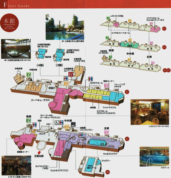 | チェックインは本館フロントで、別館は隣の建物なので一度外にでてから部屋に入る。人数が多い(大人4名小学生1名幼児1名合計6名)から別館7階角部屋だった。以前泊まった本館も広かったがここも同じくらい90㎡もある広さ。このホテルはマンションを改造してホテルにしたので情緒は少し欠けるが、どこも広い部屋でありがたい。それとお風呂は天然温泉。 | |||||||||||||||||||||||||||||||||||