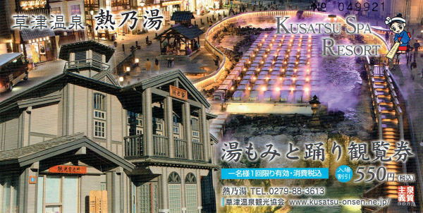 草津温泉街歩きはホテルを出てすぐの、湯畑に面して湯もみの実演場「熱乃湯」〜