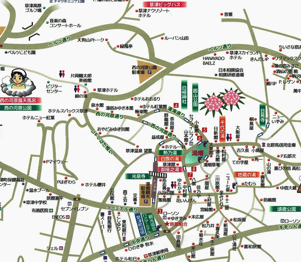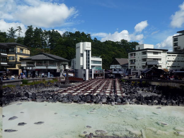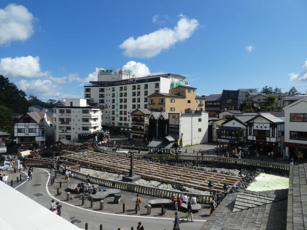 草津温泉は過去に一度だけ来たことがある。その時は立ち寄っただけで宿泊は今度が初めて。ホテルを出ると名物の湯畑、老若男女、日本人&海外旅行者ですごい賑わい、さすが日本一の温泉、街全体活気に満ちている。 |