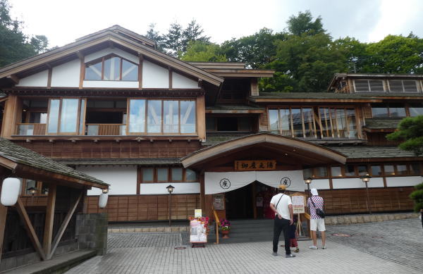 その先に「御座乃湯」、千年以上昔から愛され続けている草津温泉のシンボルでもある湯畑前に江戸から明治にかけてあった共同湯のひとつを再建した。 |