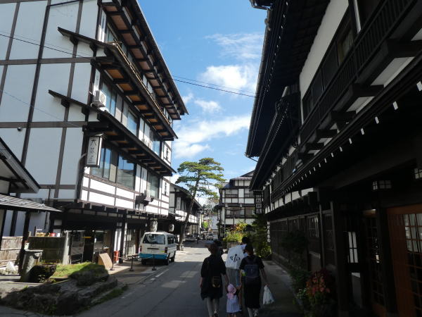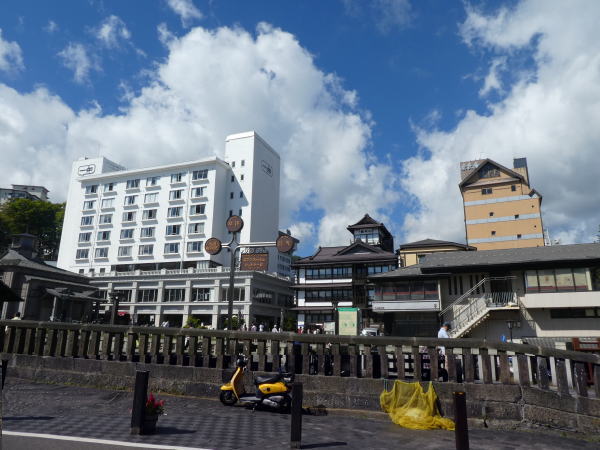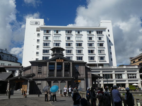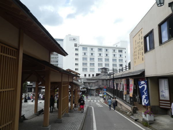 温泉街を下る途中で今夜の宿ホテル一井が正面に見える。 |