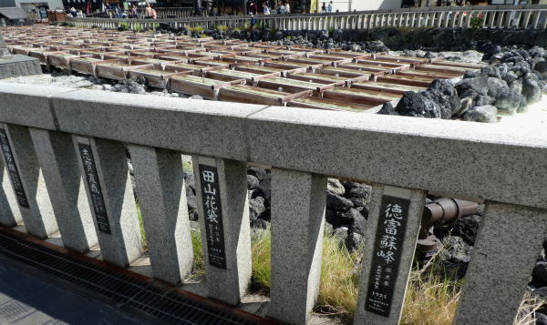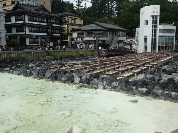湯畑(ゆばたけ)とは、源泉を地表や木製の樋に掛け流し、温泉の成分湯の花の採取や湯温を調節する施設のこと。by--Wikipedia |