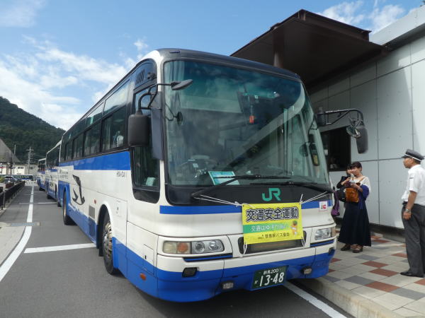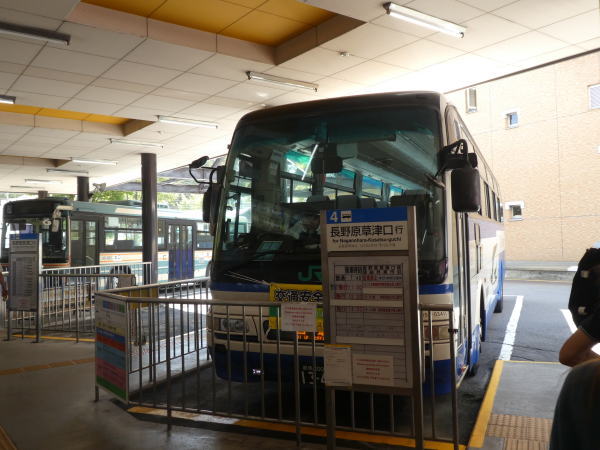 終点の長野原草津口駅改札をでるとJRバスが3台待機している。一番前の車両。スイカが使えてタッチして乗車。700円。 |