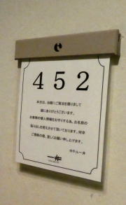 西館はホテルの中で一番の高台にあり、本館ロビーを2階に降りる。次に歩いて別館に移動。エレベーターで別館の5階に上がる。別館5階から歩いて西館に渡る。そしてやっと西館のエレベーターで4階に上がりるとやっと部屋に到着。 |