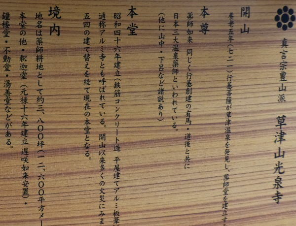 次に「御座之湯」脇の石段を上がった先は草津山/光泉寺の境内。 |