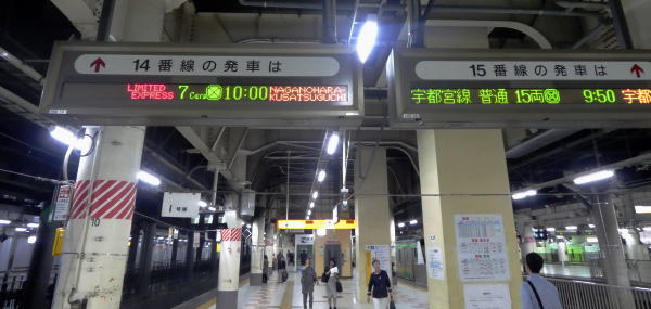 草津1号は上野駅の新幹線改札口の横にある14番線で発着している。 |