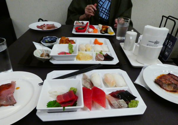 浴衣に着替えて、夕食は17:30〜別館2階のビュッフェ会場レストラン「あららぎ」で。 |
