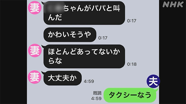 | ラインを見せてくれた官僚と妻です。2人には小さな子どもがいますが、 官僚の夫は1か月の残業が200時間を超えることもあるとしたうえで、こんな本音を漏らしました。 |