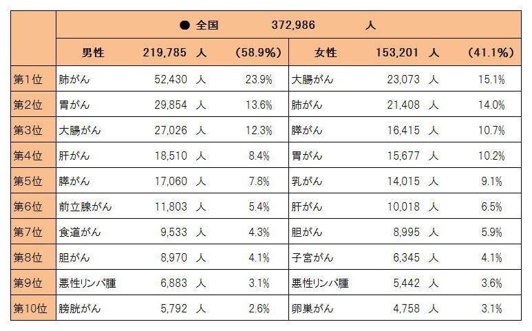 | 1位.がん 373,547人 2位.心疾患 208,210人 3位.老衰 109,606人 4位.脳血管疾患