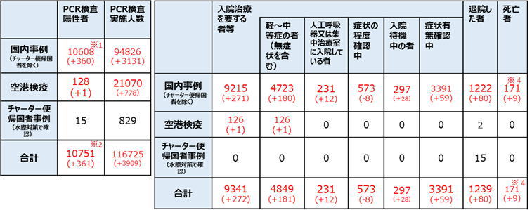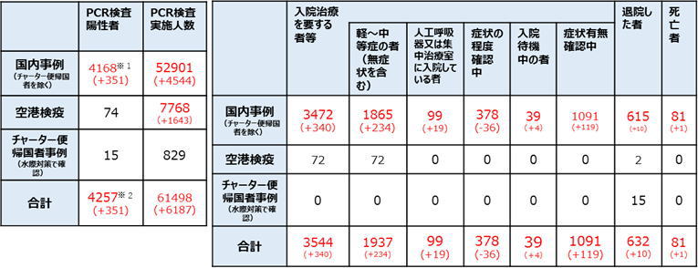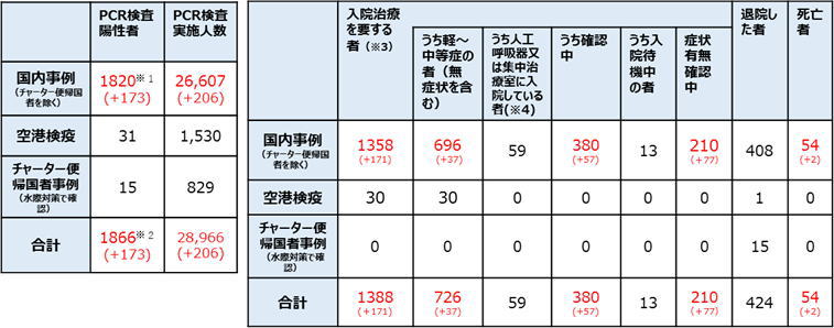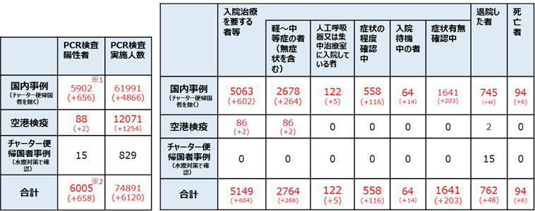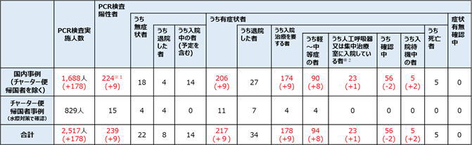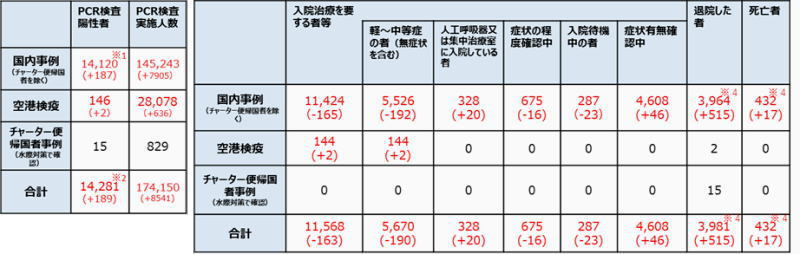 【日本国内入退院等の状況】![]() (括弧内は前日からの変化) |
