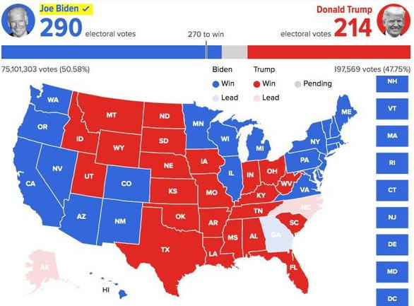 ![]() アメリカ大統領選挙 開票速報 11月8日11時7分現在(日本時間) |