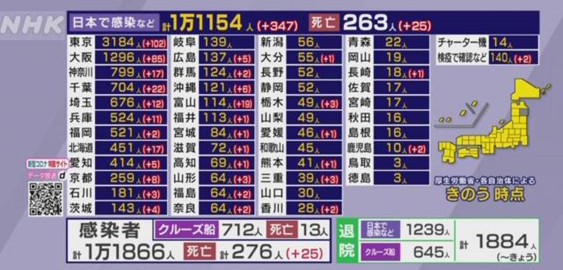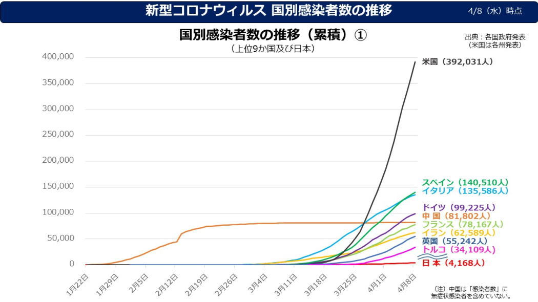 | 日本国内の 発生状況 4月8日現在 患者数4168名 |