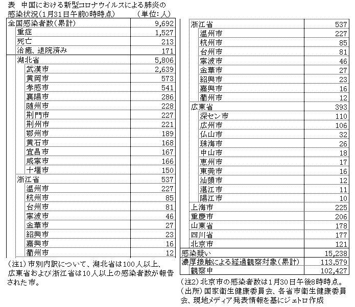 中国 武漢市における新型コロナウイルス関連肺炎について(令和2年1月31日) |