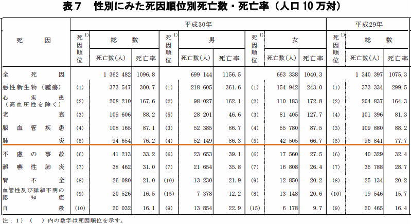 | 2018年(平成30年)日本人の主な死亡原因 |