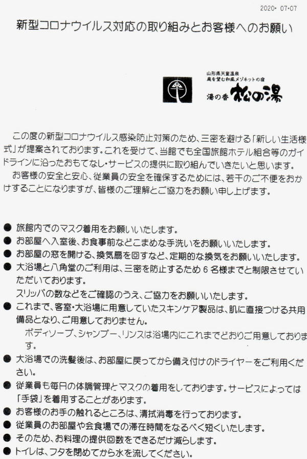 5分くらいで宿に到着、タクシーを降りると、手に検温器を持った中居さんが出迎え。おでこにあて体温測定。 |