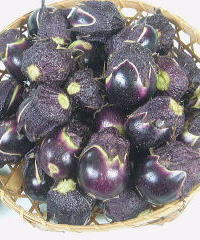 出羽三山の巡礼を無事果たした芭蕉と弟子の曽良。羽黒山から鶴岡までは20㌔ほど、鶴岡の長山重行宅に到着。疲労はかなりのもので芭蕉の消耗はひどく、体調不良が1週間近く続いた。しばし逗留した後「めずらしや山をいで羽の初茄子」の句を残している。初茄子は山形の宿で、たびたび食した 実だけが小さい「民田なす」 |