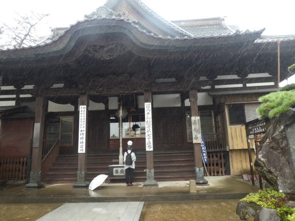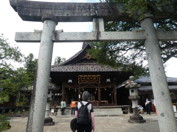 歩き始めてすぐに小雨が落ちてくる。駅を背にして10分くらいまっすぐ進んだ先に八幡神社。 よってお参りする。 |