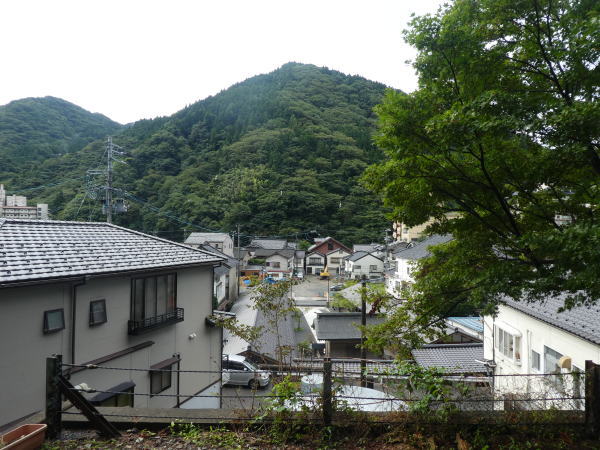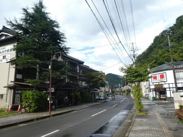 天童公園/舞鶴山から車道を下山する。温泉街に入ると今夜の宿「湯の香・松の湯」に到着 |
