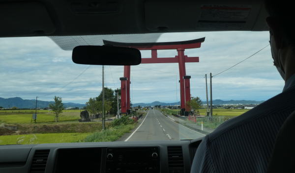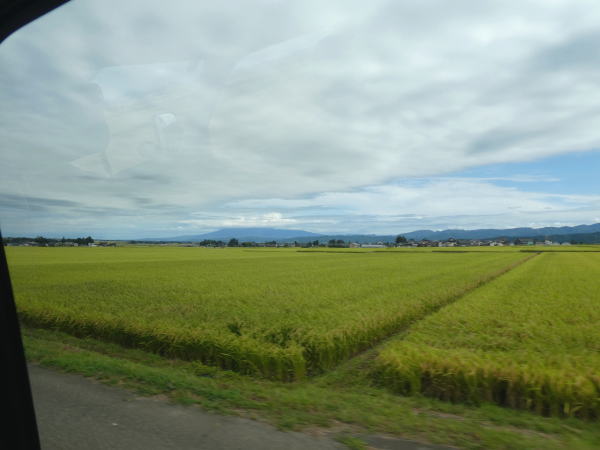 運転手さんの好意で、少し遠回りして、遠く鳥海山の一番きれいに見える庄内平野を横切って駅に向かう。 |