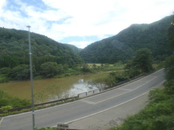 余目から新庄へ向かう電車は、最上川船下りの辺りを通過していく。 芭蕉もこの辺りの最上川を船で下ったはず。 |