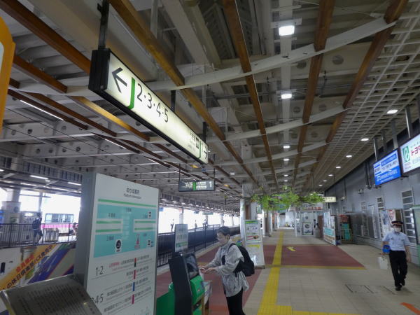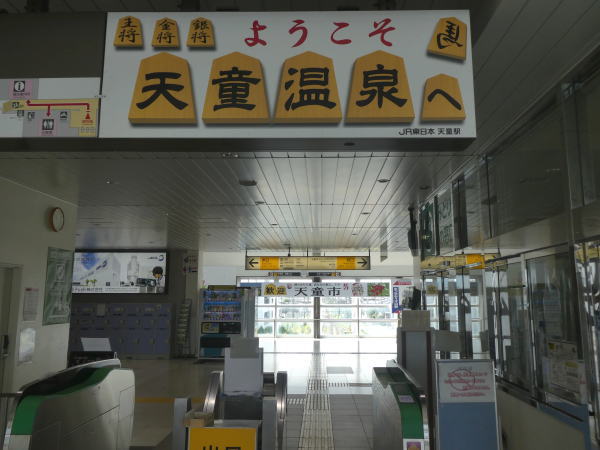 将棋の町らしい駅の改札。 |